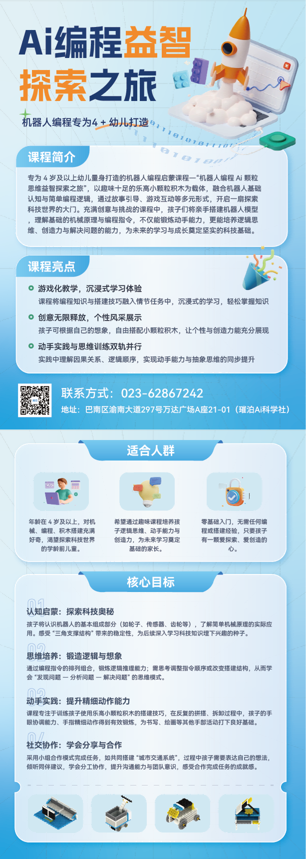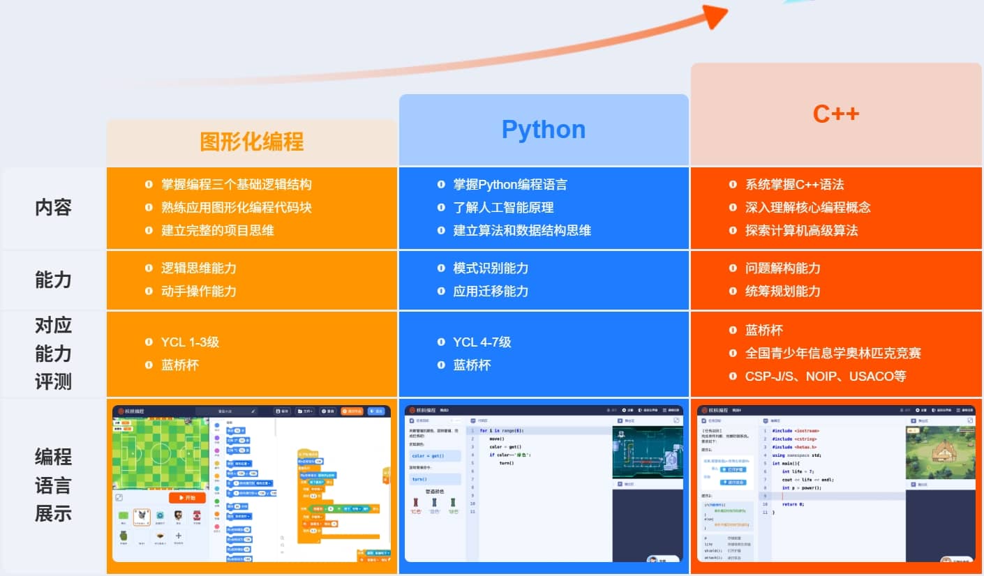 专业的课程体系 培养科技特长,锻炼计算思维,塑造学习习惯,理解未来世界 一站式进阶学习体系 能力素养与硬核竞技兼备,百万学员验证的学习之路 部分课程介绍 中更多课程介绍请在微信搜索"璀泊智教通"小程序查看
